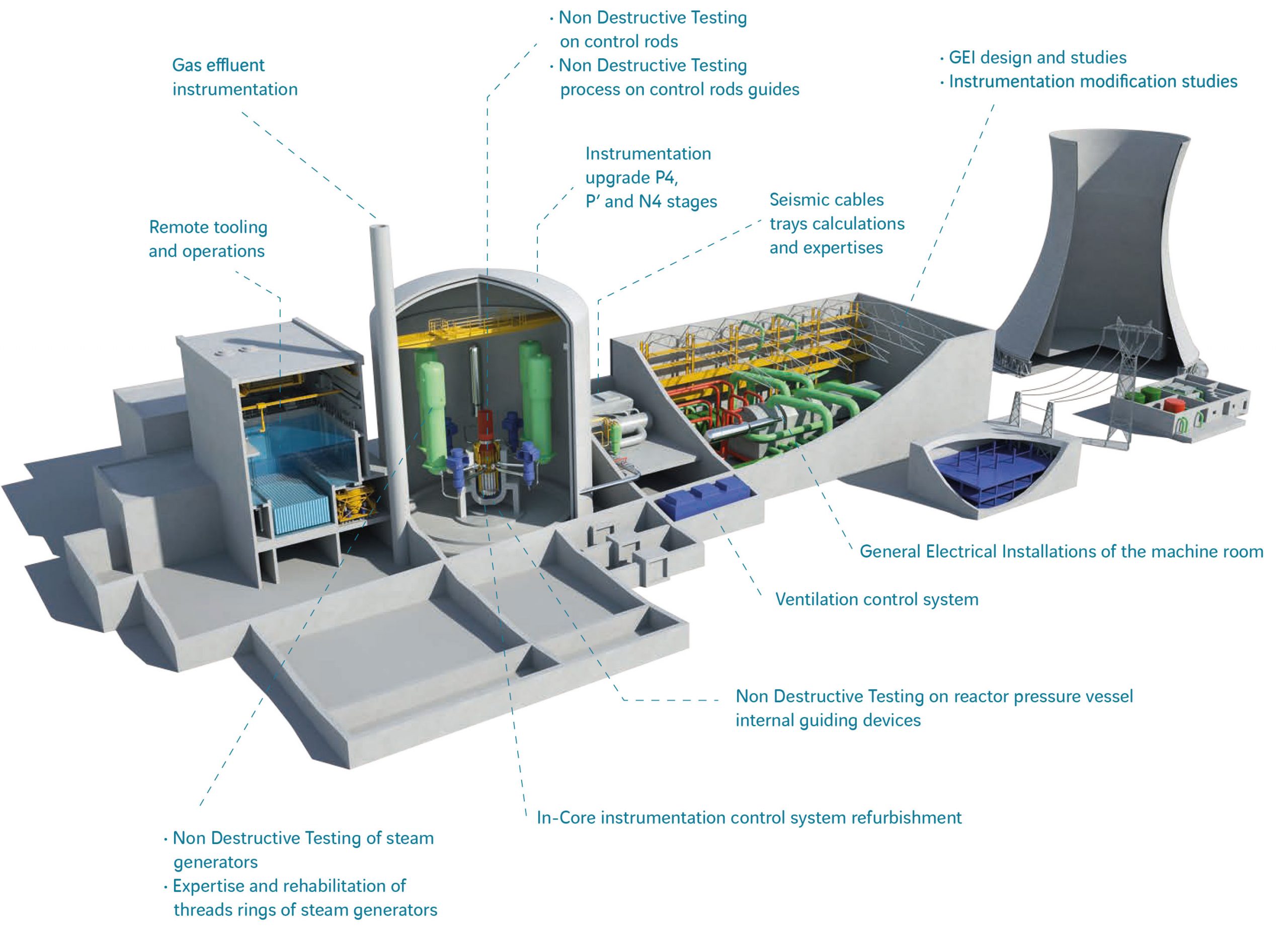 Positioned across the entire value chain and the complete life-cycle of Nuclear Power Plants (NPPs), Omexom delivers a wide range of solutions for works and maintenance deliveries.